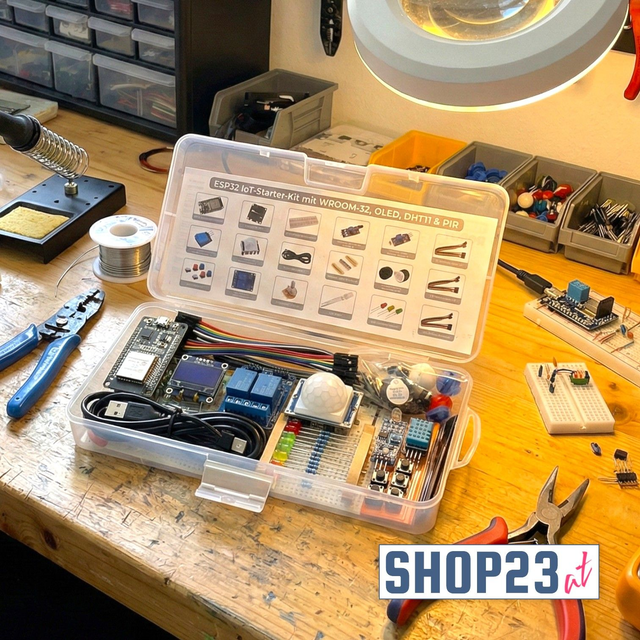 Dieses sorgfältig zusammengestellte Set bietet alles, was Sie für ambitionierte IoT-Projekte benötigen. Das Herzstück ist das ESP32-WROOM-32 Modul, ein leistungsstarker Mikrocontroller mit integriertem WLAN und Bluetooth, kompatibel mit der Arduino IDE.