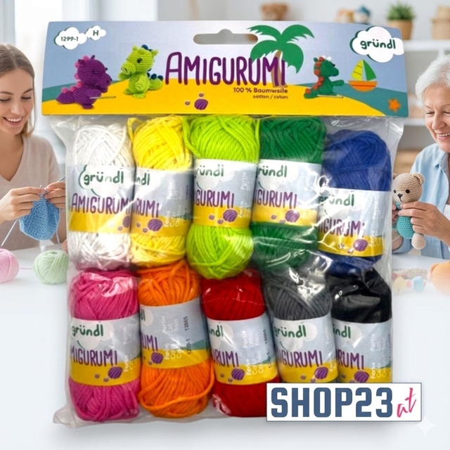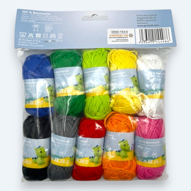 Erwecken Sie Ihre Häkelfiguren zum Leben! Dieses Gründl Amigurumi-Set enthält 10 handliche 10g-Knäuel aus hochwertiger, 100 %iger Baumwolle. Die Farbauswahl „Buntstiftfarben“ bietet eine lebendige Palette von strahlendem Gelb bis hin zu tiefem Blau – perfekt für farbenfrohe Details, kleine Tiere oder individuelle Accessoires. Das Garn ist besonders pflegeleicht, strapazierfähig und überzeugt durch einen seidigen Glanz sowie eine angenehme Haptik. Ideal für Anfänger und Profis, die Vielfalt in einem praktischen Paket suchen. Gestalten Sie süße Amigurumis und Deko-Elemente in bewährter Gründl-Qualität. Ein Muss für jeden kreativen Häkelfan!