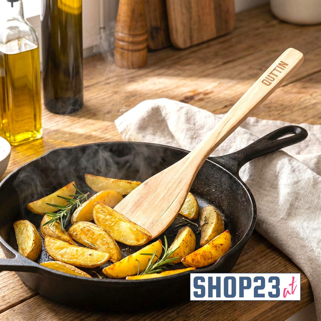 Der zeitlose Klassiker für Ihre Küche. Dieser Pfannenwender aus robustem Naturholz ist das ideale Werkzeug für alle Ihre Kochbedürfnisse. Mit einer Länge von 30 cm liegt er perfekt in der Hand und bietet eine sichere Reichweite beim Kochen. Holz ist von Natur aus hitzebeständig und überhitzt nicht, was die Handhabung am Herd besonders angenehm macht. Ein großer Vorteil ist die Eigenschaft, dass Holz Antihaft-Beschichtungen nicht beschädigt – somit verlängern Sie die Lebensdauer Ihrer hochwertigen Pfannen. Zudem ist Holz ein nachhaltiger und langlebiger Rohstoff. Das schlichte, natürliche Design passt in jede Küche. Ein unverzichtbares, umweltfreundliches und pfannenschonendes Küchenutensil.